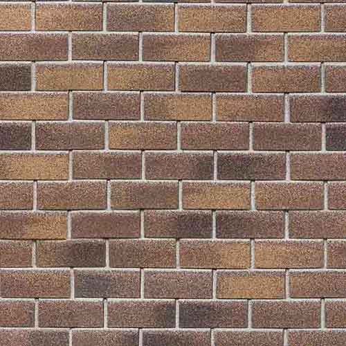 Фасадная плитка Хауберк Бельгийский кирпич состоит из одного слоя. Основа – стеклохолст, пропитанный улучшенным битумом, покрытие – базальтовая крошка.