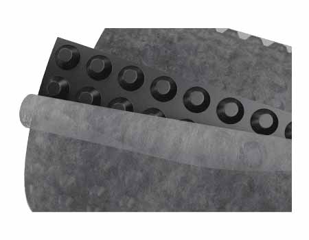 - Наличие конусообразных выступов на лицевой стороне мембраны обеспечивает свободную циркуляцию воздуха, что способствует здоровому микроклимату помещения. Состоит из очень прочного материала, поэтому устойчива к химическому, механическому, бактериальному, ультрафиолетовому воздействию. Геотекстиль обеспечивает фильтрацию воды.