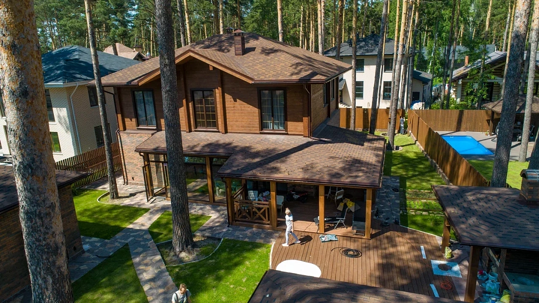Гибкая черепица Шинглас Фокстрот Дуб применяется в качестве кровельного материала для скатной крыши любой формы и конфигурации. А форма нарезки Аккорд позволяет создать видимое впечатление натуральной деревянной черепицы.