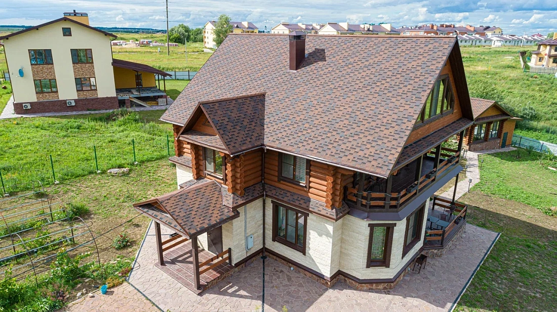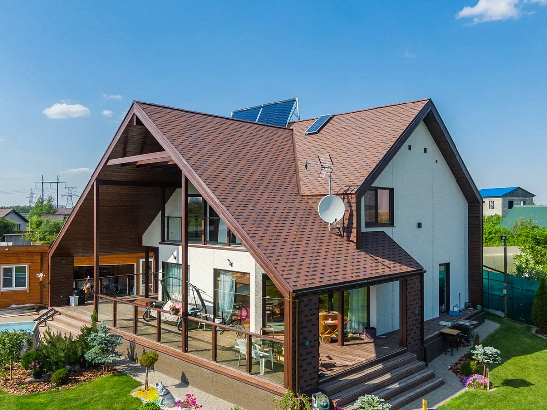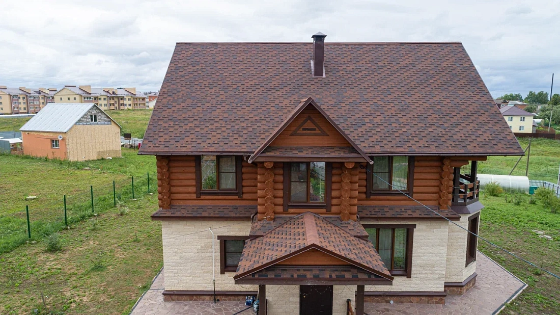Гибкая черепица Шинглас Фокстрот Кедр применяется в качестве кровельного материала для скатной крыши любой формы и конфигурации. А форма нарезки Аккорд позволяет создать видимое впечатление натуральной деревянной черепицы.